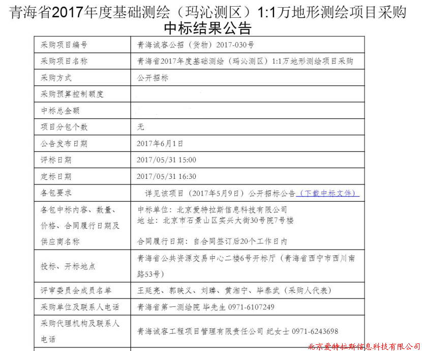 近日,在青海省第一測(cè)繪院實(shí)施的“青海省2017年度 基礎(chǔ)測(cè)繪(瑪沁測(cè)區(qū))1:1萬地形測(cè)繪項(xiàng)目采購”我們一舉中標(biāo)。