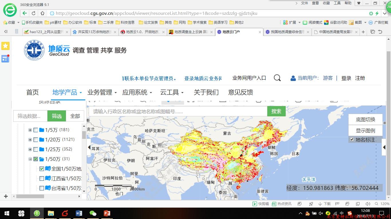 2017年11月6日,“地質(zhì)云1.0”正式上線服務(wù)。“地質(zhì)云1.0”整合、匯聚了大量地質(zhì)數(shù)據(jù)與產(chǎn)品資源,各節(jié)點地質(zhì)數(shù)據(jù)分布存儲、統(tǒng)一發(fā)布、集中服務(wù),基于MapGIS云平臺共完成了70多個國家核心地質(zhì)數(shù)據(jù)庫處理與云端統(tǒng)一注冊管理,形成了369個在線數(shù)據(jù)服務(wù)接口。通過對地質(zhì)調(diào)查成果、專用設(shè)備和專業(yè)軟件等梳理、整合,構(gòu)建了8大類的地質(zhì)云信息產(chǎn)品體系,整理上線地質(zhì)信息產(chǎn)品2382項,并實現(xiàn)13萬余檔地質(zhì)資料、2986幅公開版地質(zhì)圖、海量圖書文獻、地學(xué)科普等各類產(chǎn)品的統(tǒng)一接入,形成有序、規(guī)模、權(quán)威的地質(zhì)信息資源統(tǒng)一服務(wù)平臺。
