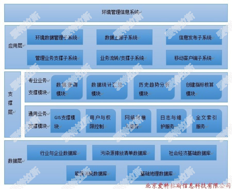 >> 采用B/S架構(gòu)設(shè)計環(huán)境管理信息系統(tǒng),以數(shù)據(jù)庫為基礎(chǔ),實現(xiàn)企業(yè)數(shù)據(jù)服務管理,企業(yè)環(huán)境數(shù)據(jù)采集、處理與統(tǒng)計匯總,企業(yè)上報數(shù)據(jù)審核、查詢、統(tǒng)計、展示的功能;