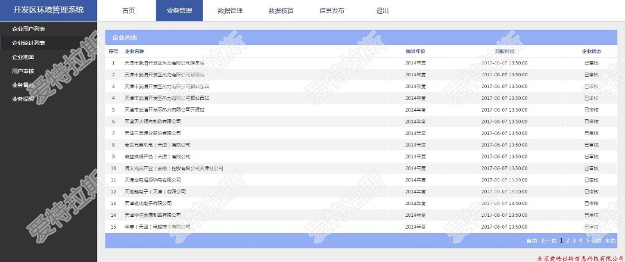 北京愛特拉斯信息科技有限公司,針對管理部門、園區(qū)企業(yè)、社會公眾三個不同的角色,開發(fā)了三套頁面: