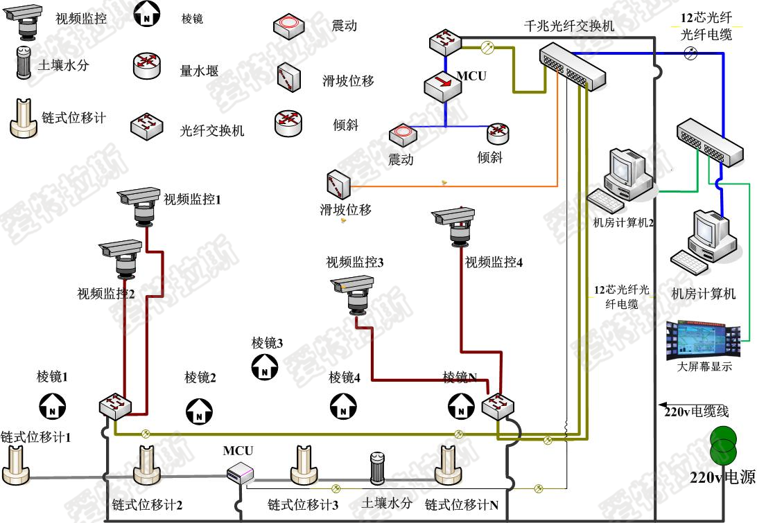 2.對(duì)開(kāi)關(guān)站邊坡的不均勻沉降、土體含水量,自動(dòng)化監(jiān)測(cè)、采集和傳輸。