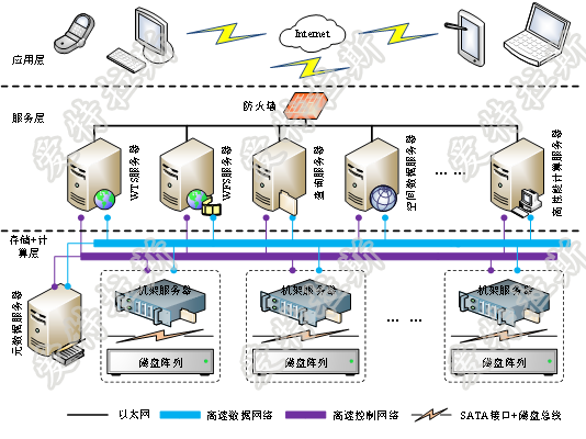采用適合于海量數(shù)據(jù)的大規(guī)模存儲(chǔ)與高性能并行處理的“存儲(chǔ)—計(jì)算”一體化的分布式高性能構(gòu)架是一種典型的無(wú)共享系統(tǒng)構(gòu)架,分而治之的辦法,將數(shù)據(jù)規(guī)律地分布到節(jié)點(diǎn)上,充分利用節(jié)點(diǎn)主機(jī)的I/O能力,以使總體達(dá)到最大的I/O速率。