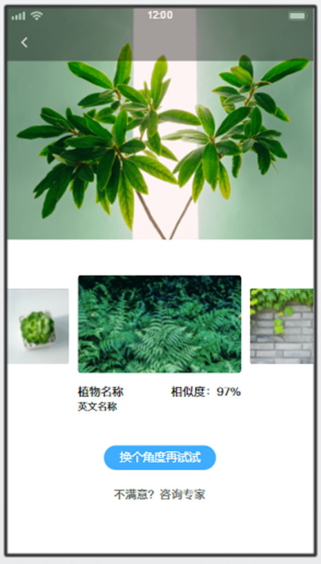 拍照或上傳圖片,開始識(shí)別,彈出識(shí)別結(jié)果。