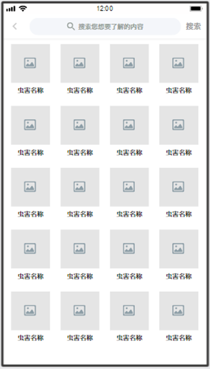 點(diǎn)擊蟲害庫圖片,進(jìn)入農(nóng)作物分類界面,支持關(guān)鍵字搜索查詢。