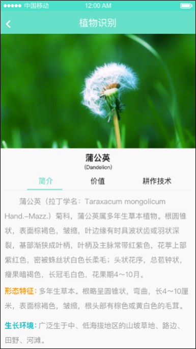 基于上傳的植物照片在線識(shí)別植物科屬種,并給出該植物的形態(tài)特征、地理分布、生態(tài)特征、飼用價(jià)值、栽培要點(diǎn)等相關(guān)專業(yè)知識(shí),提供手機(jī)APP。