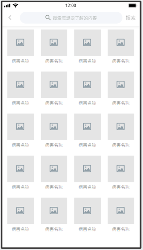 點(diǎn)擊病害庫圖片,進(jìn)入農(nóng)作物分類界面,支持關(guān)鍵字搜索查詢。