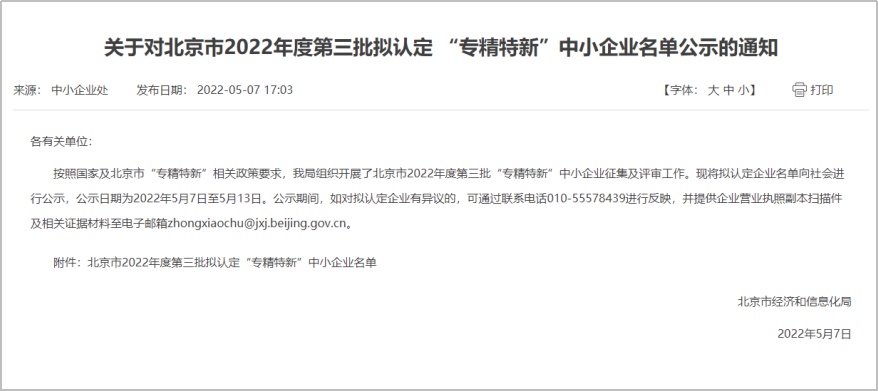 2022年5月,經(jīng)過嚴格的資質(zhì)審核,北京愛特拉斯信息科技有限公司入選北京市2022年度第三批“專精特新”企業(yè)?!皩>匦隆逼髽I(yè)的入選表明愛特拉斯具有產(chǎn)品技術(shù)得先進性和創(chuàng)新性,具有自主國產(chǎn)化的核心產(chǎn)品和技術(shù),產(chǎn)品技術(shù)成熟、質(zhì)量可靠,符合國家對產(chǎn)品(服務(wù))專、精、特、新的相關(guān)規(guī)定及特殊要求,具有潛在的經(jīng)濟效益和較大的市場前景,這為愛特拉斯未來的發(fā)展打下了堅實基礎(chǔ)。