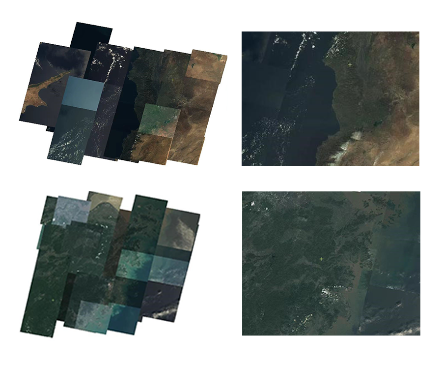 由于衛(wèi)星相機(jī)及拍攝環(huán)境等因素的影響,導(dǎo)致同一區(qū)域來自不同相機(jī)的圖像在亮度、色彩等方面會存在差異,影響整體的美觀和應(yīng)用。因此,非常有必要對多相機(jī)圖像進(jìn)行勻光勻色。相鄰的遙感圖像,由于成像日期、季節(jié)、天氣、環(huán)境等因素可能有差異,不僅存在幾何畸變問題,而且還存在輻射,水平差異導(dǎo)致同名地物在相鄰圖像上的色彩亮度值不一致。如不進(jìn)行色調(diào)調(diào)整就把這種圖像鑲嵌起來,即使幾何配準(zhǔn)的精度很高,重疊區(qū)復(fù)合得很好,但鑲嵌后兩邊的影像色調(diào)差異明顯,接縫線十分突出,既不美觀,也影響對地物影像與專業(yè)信息的分析與識別,降低應(yīng)用效果。要求鑲嵌完的數(shù)據(jù)色調(diào)基本無差異,美觀。遙感影像勻色后保證影像整體色彩一致性。