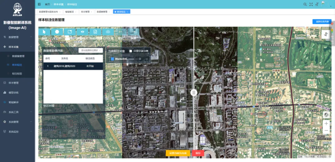 系統(tǒng)支持多樣化的樣本標(biāo)注方式,不僅促進了團隊間的信息共享與協(xié)作,還通過兼容現(xiàn)有標(biāo)注數(shù)據(jù),極大縮短了項目準(zhǔn)備周期。變化檢測功能的創(chuàng)新性標(biāo)注界面——卷簾模式與多窗口視圖,讓對比分析變得直觀而精確,確保每一個細(xì)節(jié)變化都不被遺漏。
