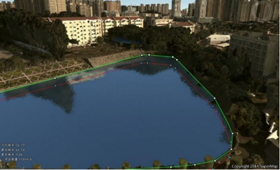 產(chǎn)品支持將 BIM 數(shù)據(jù)與水面數(shù)據(jù)進(jìn)行融合。針對水面數(shù)據(jù),產(chǎn)品支持創(chuàng)建水面符號,支持設(shè)置水波大小、水面顏色等參數(shù),可制作出具有實(shí)時倒影、動態(tài)波紋的水面符號。