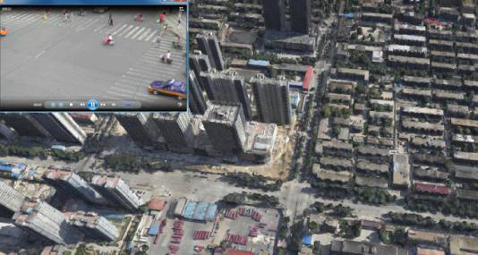 產(chǎn)品將視頻數(shù)據(jù)與傾斜攝影 數(shù)據(jù)進(jìn)行融合,有效利用海量的視頻信息,同時實(shí)現(xiàn)了監(jiān)控區(qū)域信息的實(shí)時更新。