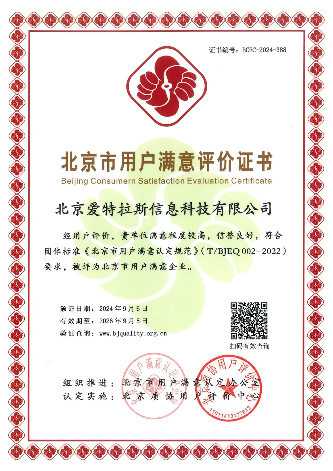 喜報 | 愛特拉斯榮獲北京市用戶滿意企業(yè)